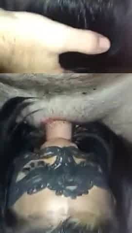 Masked Brunette girl Sucking Cock