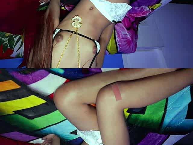 Tiny ladyboy with large titties plays with her bald schlong in