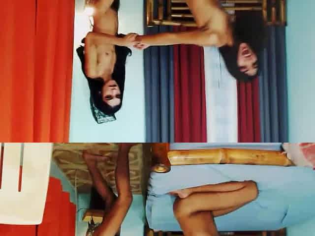 Two hot asian shemales work their asses out on cam.