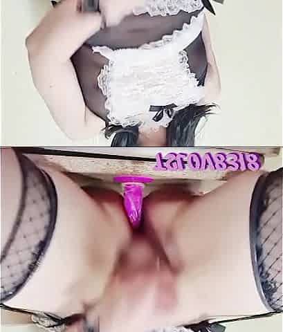 Shemale Maid cosplay, high heels, anal plug, cumshot