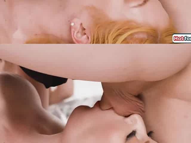 Brunette Hair ladyboy with petite titties enjoys 69 with her