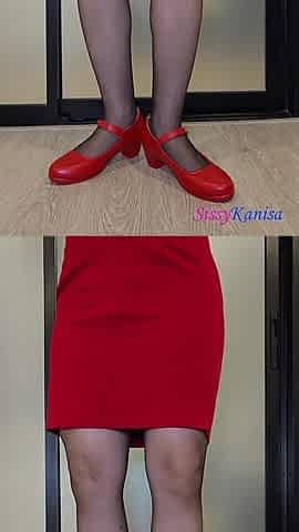 Sissy Kanisa's Fitting Room: Red Pencil Skirt, Black Lace Pantyhose, Red Hight Heels