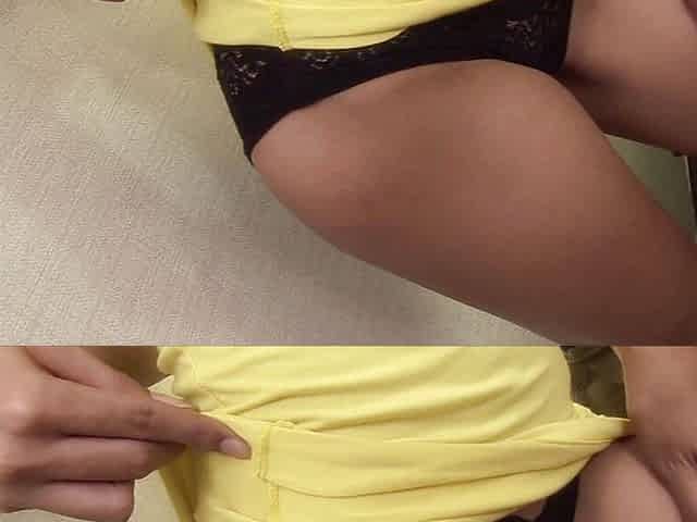 Petite Asian ladyboy in yellow lingerie masturbate his ass