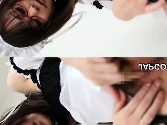 Akane Fujimoto maid with specs sucks cock and gets doggy
