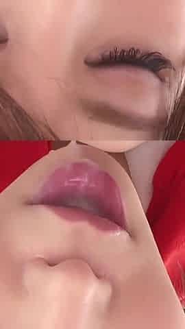 Red lips play with lewd cock.