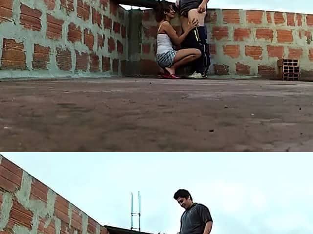 Narrow-eyed Minx Pleasuring Two Horny Studs Outdoors