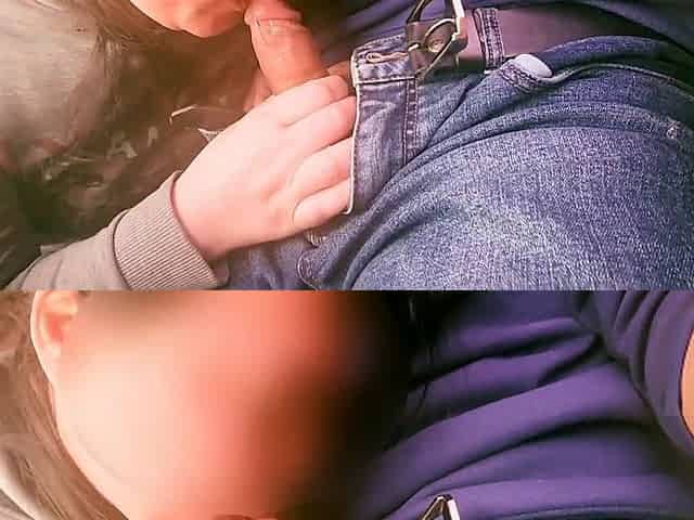My stepmom takes care of my hard on in the car, turning it into her plaything