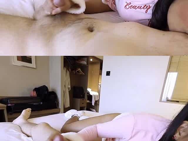 Sexy asian blowjob backside handjob and cock milking