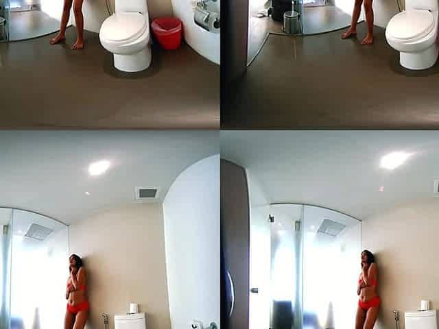 Hot Teen In Red Underwear In The Bathroom - VRpussyVision