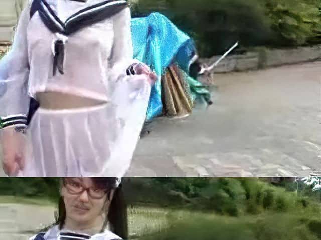 Skinny Japanese girl in a wild street sharking video