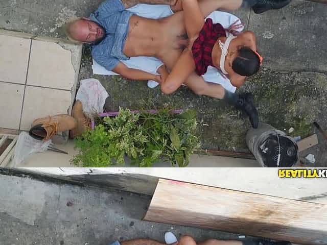 Japanese teen fucked from behind on the balcony