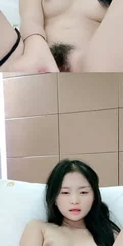 Asian tart hairy pussy toying