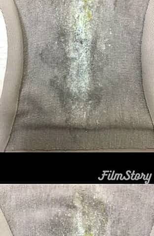 Wife's panties with a stain in the shape of a pussy