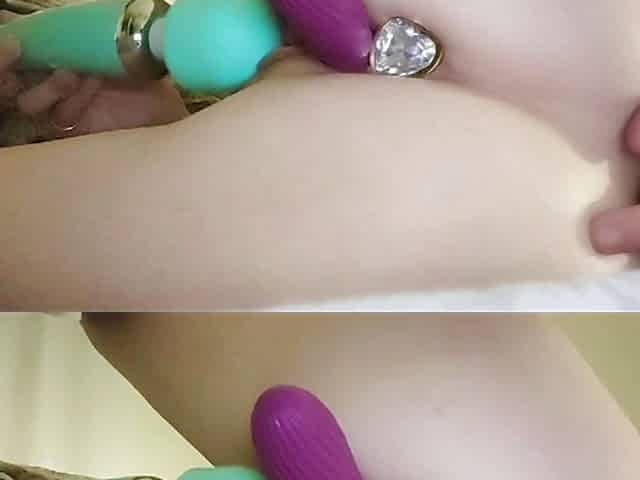"Double masturbation with multiple dildos"