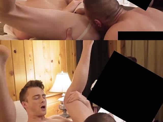 Cock sucking threesome twink gets ass licked