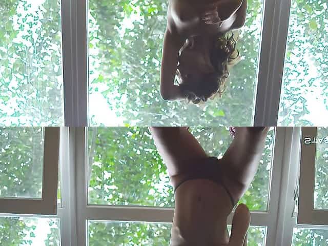 Naked babe does morning exercises and shows sweet pussy