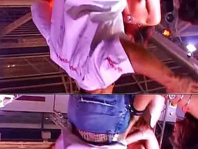 Topless dancing girls get beads from the horny audience