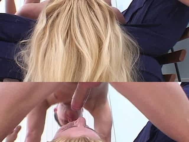 Blonde cutie gives an audition by blowing the casting director and flashing her pussy
