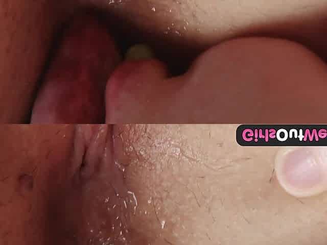 Giving her tiny wang ally an awesome oral job after playing with a sex tool