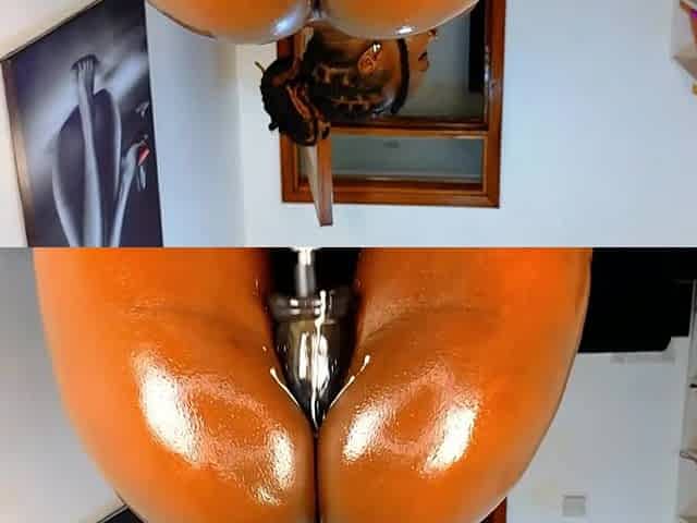 Horny ebony slut with an awesome oiled bubble butt gets the ultimate pleasure being penetrated by a sex machine