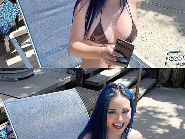 Awesome blue-haired model Eve Marlowe is enjoying fucking in the cowgirl pose
