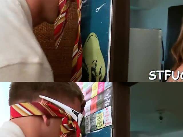 Breasty brunette hair is giving awesome blowjobs to her step- son and getting fingered on the floor
