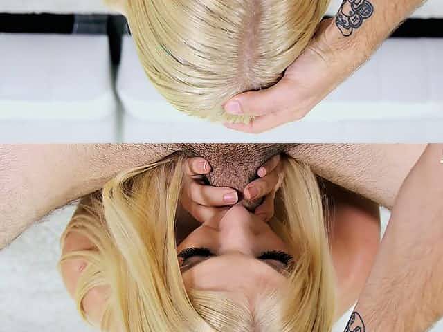Svelte fresh pale blonde girl Roxy Ryder gives awesome BJ to fat cock
