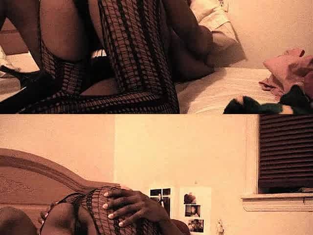 Busty black chick in black stocking giving awesome head