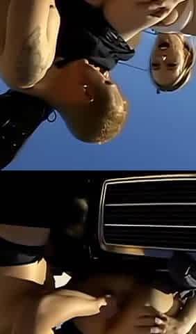 Outdoor anal solo and masturbating blonde