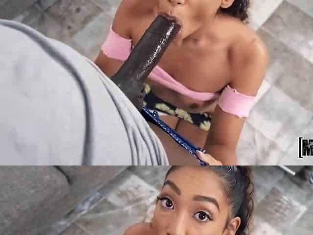 Legs Spreading While Sucking Dick with Petite Chick