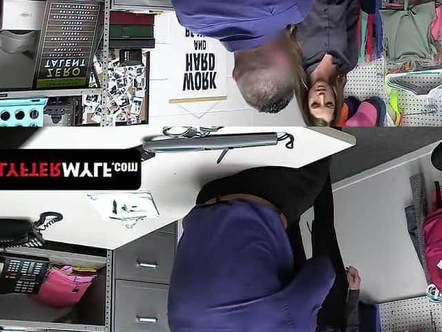 Cute shoplifter teen in the backroom needs to suck and fuck with the mall cop