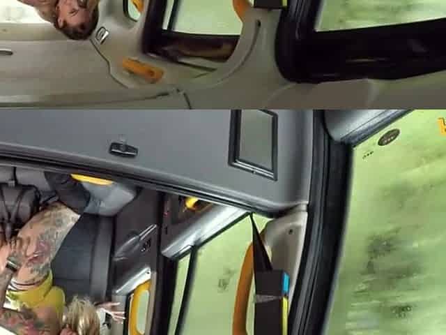 Brunette Doggystyled In The Backseat Of A Van