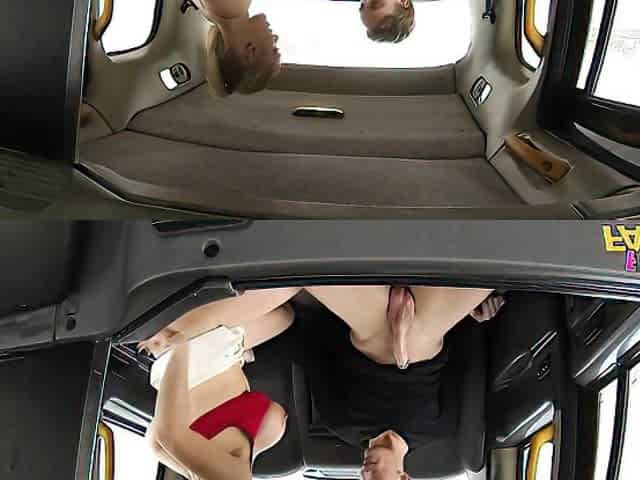 Blonde in red knickers bangs in fake taxi