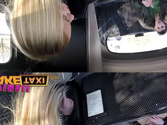 Female Fake Taxi Shy cheating boyfriend fucks blonde cab driver on backseat