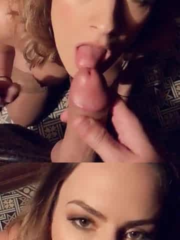 Claire Castel gives backstage blowjob with cum in mouth