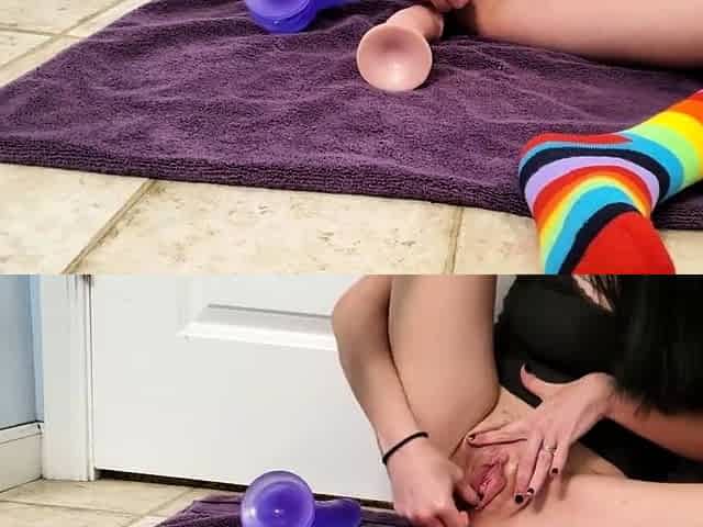 Secretly STRETCHING AND Banging my TAUT TWAT IN my PARENTS BATH
