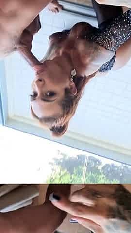 Balcony Blowjob From Neighbor Then I Dropped Load of Cum in Her Mouth