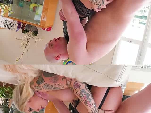 Tattooed Brunette Girl Gets Fingered And Fucked By A Bald Dude
