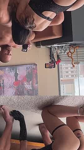 Redheaded Dafna May rocks lacy lingerie and stockings in a steamy couple session