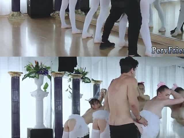 The Ballerinas goes cock riding on top alternately. The new ballet instructor is a horny and in fact he make the ballerinas beli