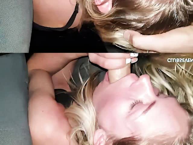 Blue-eyed doll Claudia M gives a gorgeous blowjob on the backseat