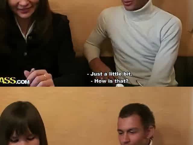 Really skinny Thai slut drops to her knees in order to get hired at the bar