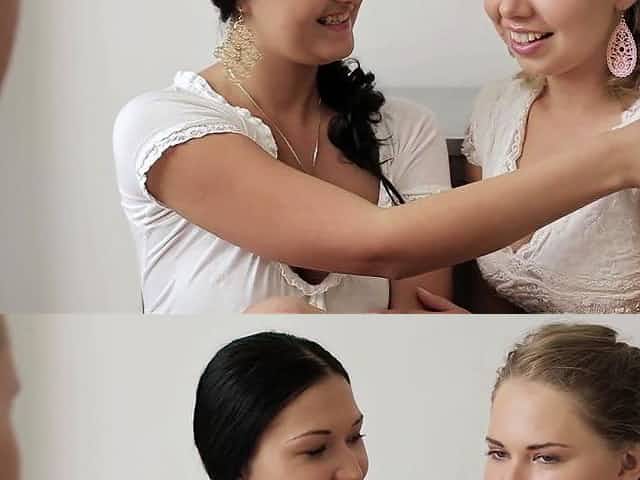 Barely legal babes Carli and Chloe enjoy erotic kisses and licks