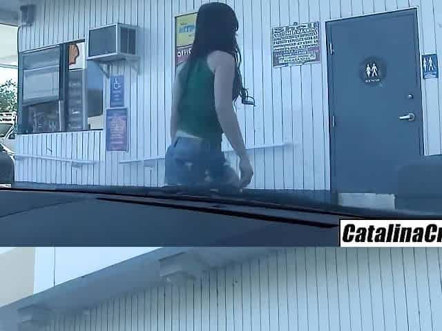 Gas Station Bathroom Masturbating Brunette Gets Huge Glory Hole Facial