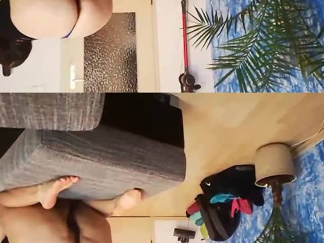 Mature busty lesbian jumps on a strapon and shakes her fat ass in panties, pov.