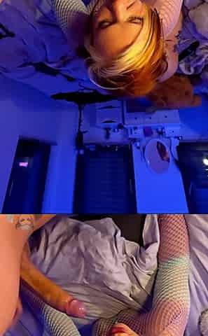 Doggy-style and blowjob sessions with Adeline in sexy lingerie and a curvy doll