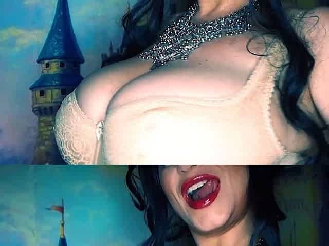 Gothic BBW playing with her big tits and a black dildo