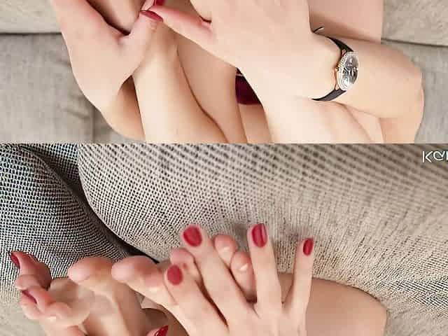 Glamorous brunette Nelly Kent is touching her shaved pussy
