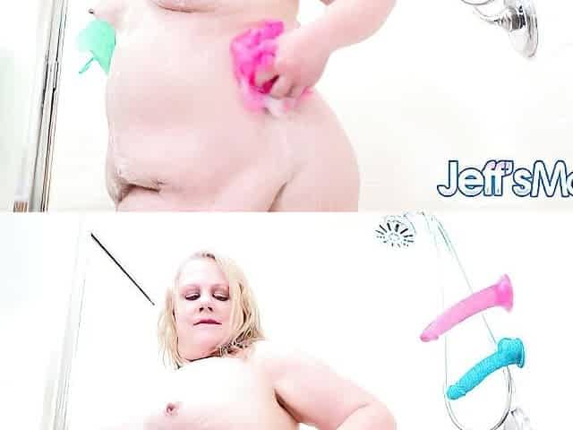 Big Boobed Blonde Masturbates With A Dildo In The Bathroom