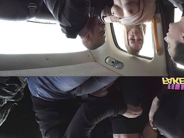 Curvy blonde slut with great tits gets a hard double banging